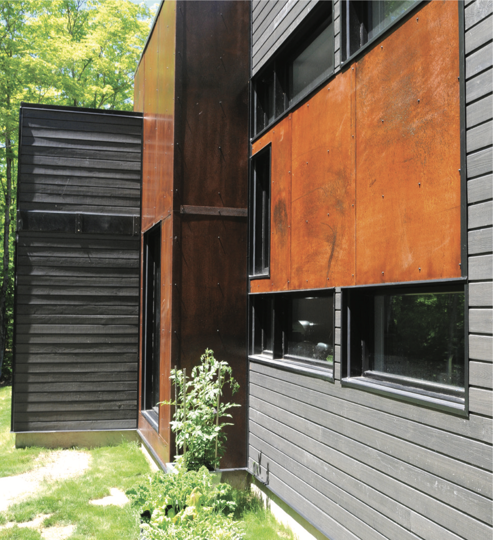 Garrison Creek found local experts to implement Kathy’s unique ideas for interior and exterior finishes. She wanted a wall of steel in the family room, as well as rust-coloured steel accent panels and a horizontal metal band bisecting the exterior siding. Parts to Print, a machine and fabrication shop in Washago, provided the atypical solutions.