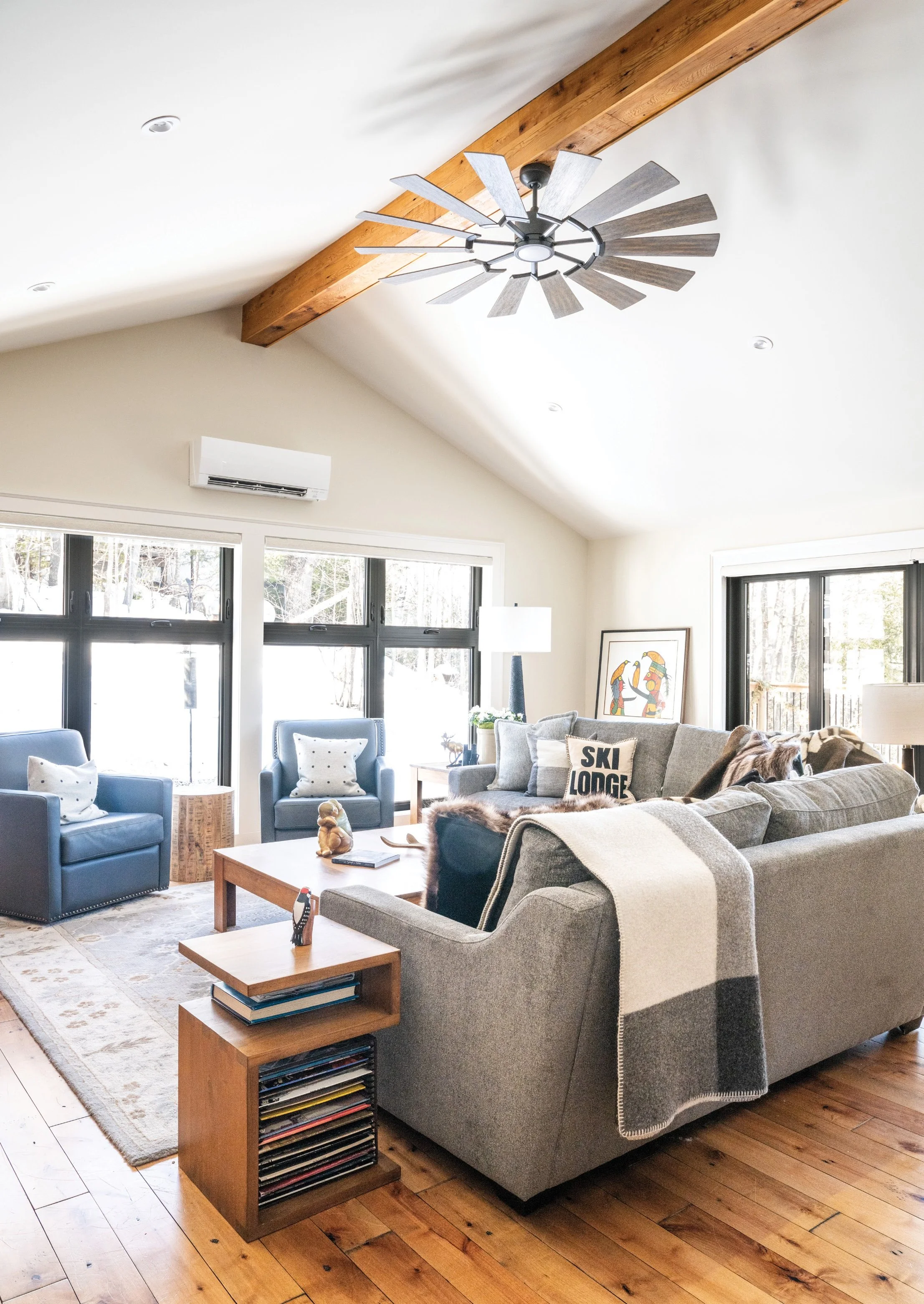 Dovetail’s role stretched well beyond furnishings. The team oversaw performance upgrades needed to make the chalet work year-round, as Devil’s Glen is now as much a summer community as it is a ski destination. They improved insulation to resolve ice buildup on the roof and added ductless HVAC systems for summer comfort. A new folding patio door creates true indoor-outdoor flow in warmer months. These enhancements aren’t flashy, but they are deeply appreciated by the homeowners. “Her team was accommodating to any changes during the renovation and afterwards followed up on the small issues that came up,” they say. “We love our new space and use it year-round. We plan on using it for all our family gatherings in the years to come.”