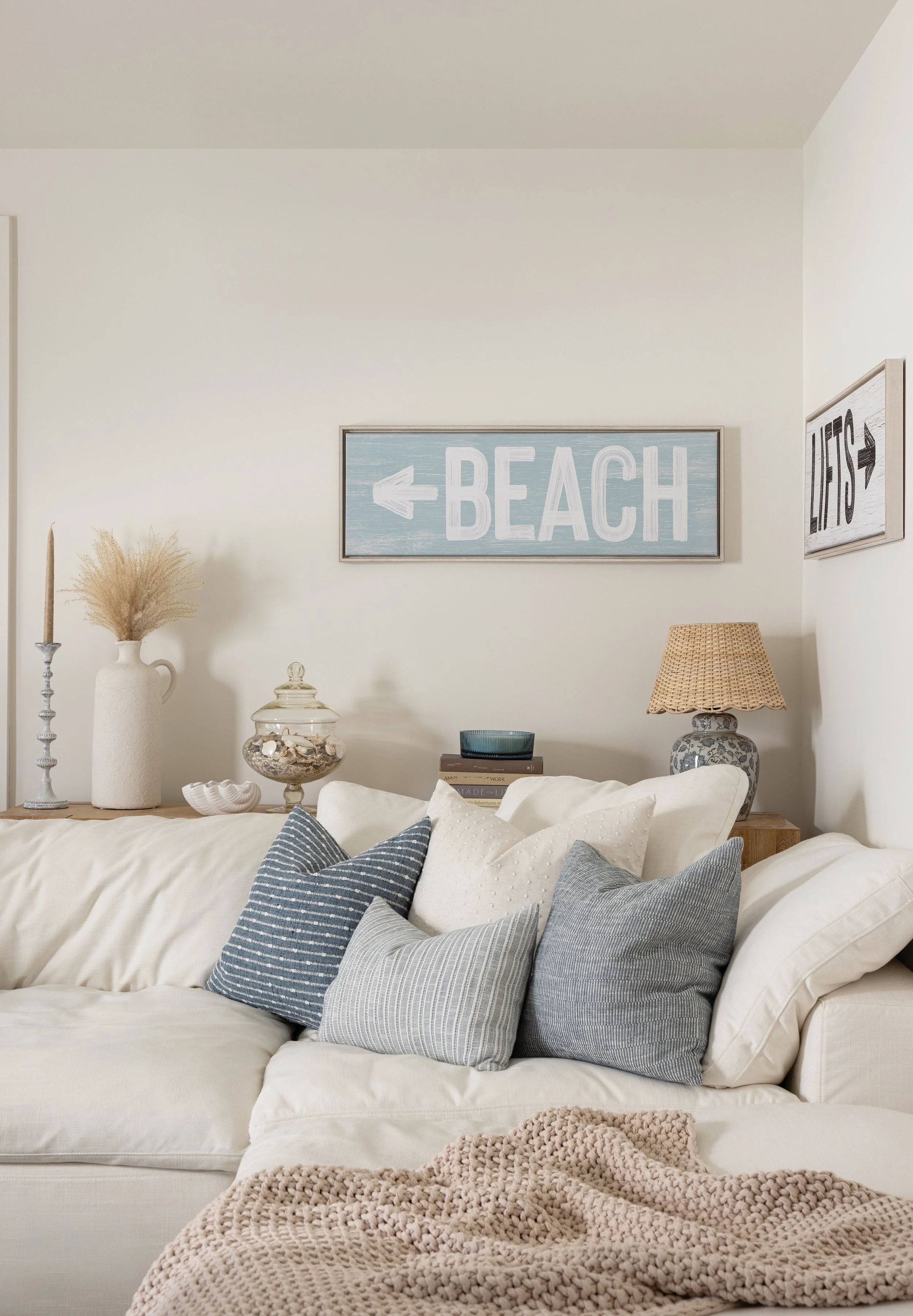 Throughout the home, the design blends soft coastal tones with warm textures and natural materials. Layered textiles, light wood finishes and decorative touches create an atmosphere that feels relaxed yet refined – perfect for hosting family and friends after a day on the beach or slopes.