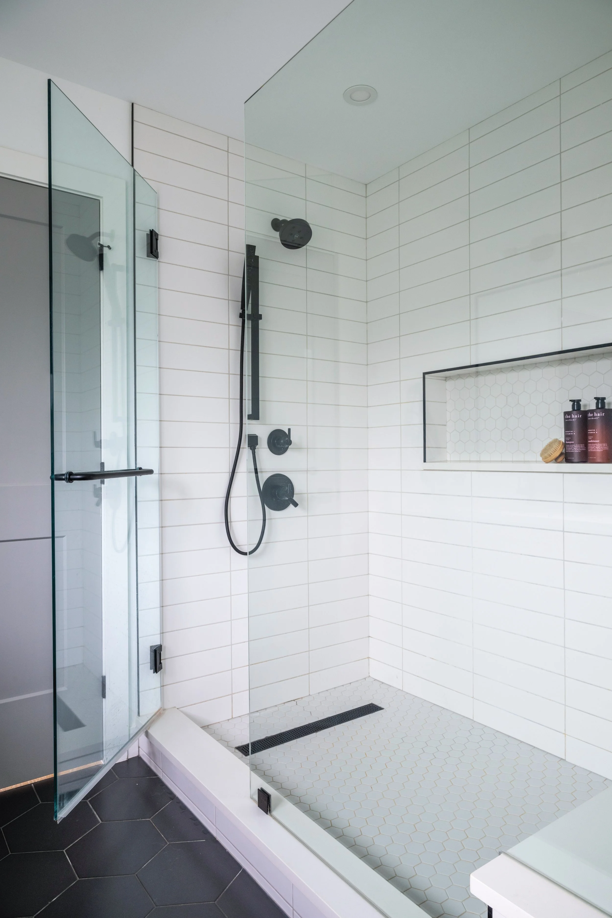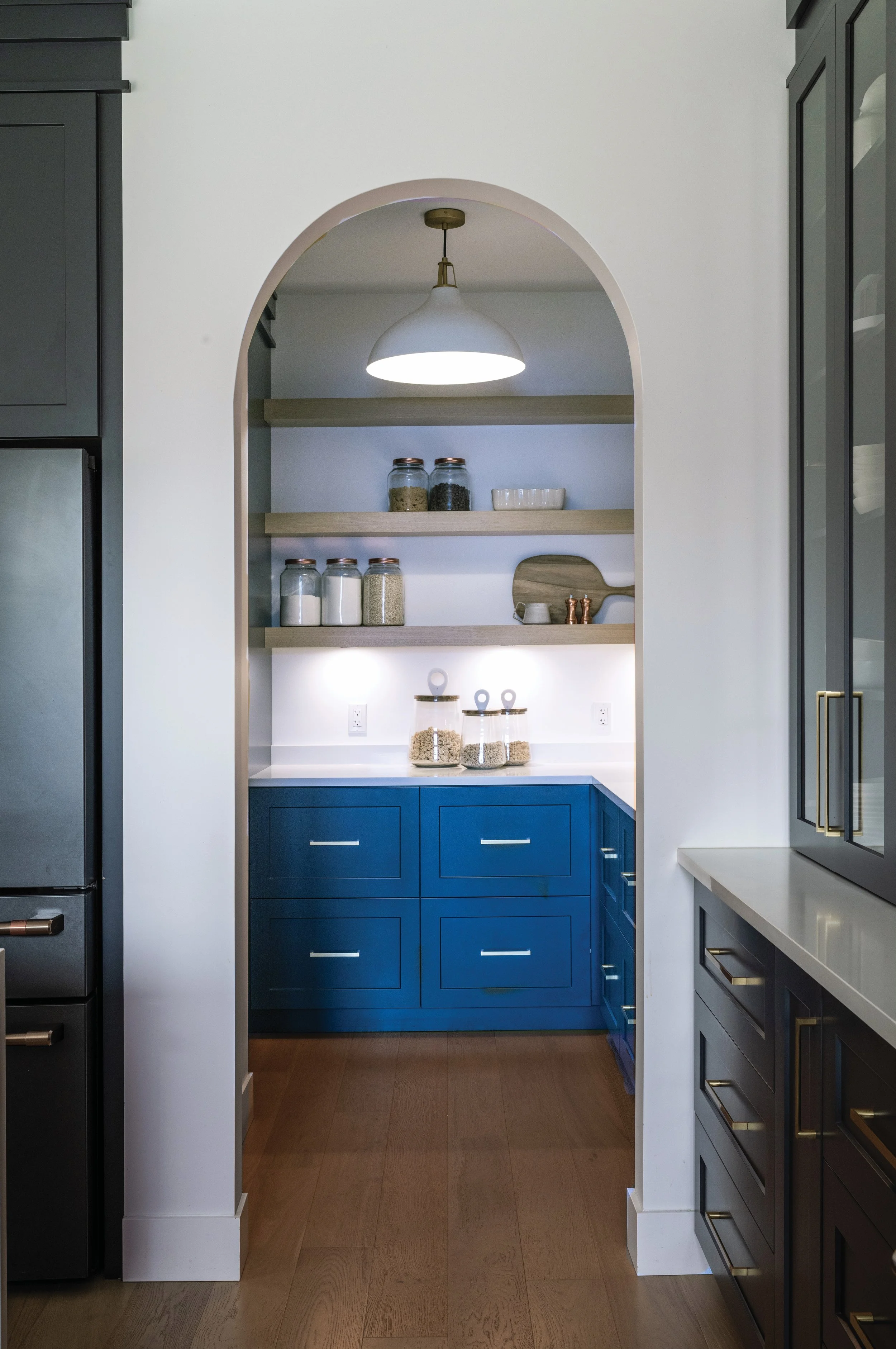 “At certain phases, the client will go to our suppliers and start making selections,” she says. “For flooring and cabinetry, Angela picked out her flooring and was able to take the flooring to the cabinetry suppliers.”