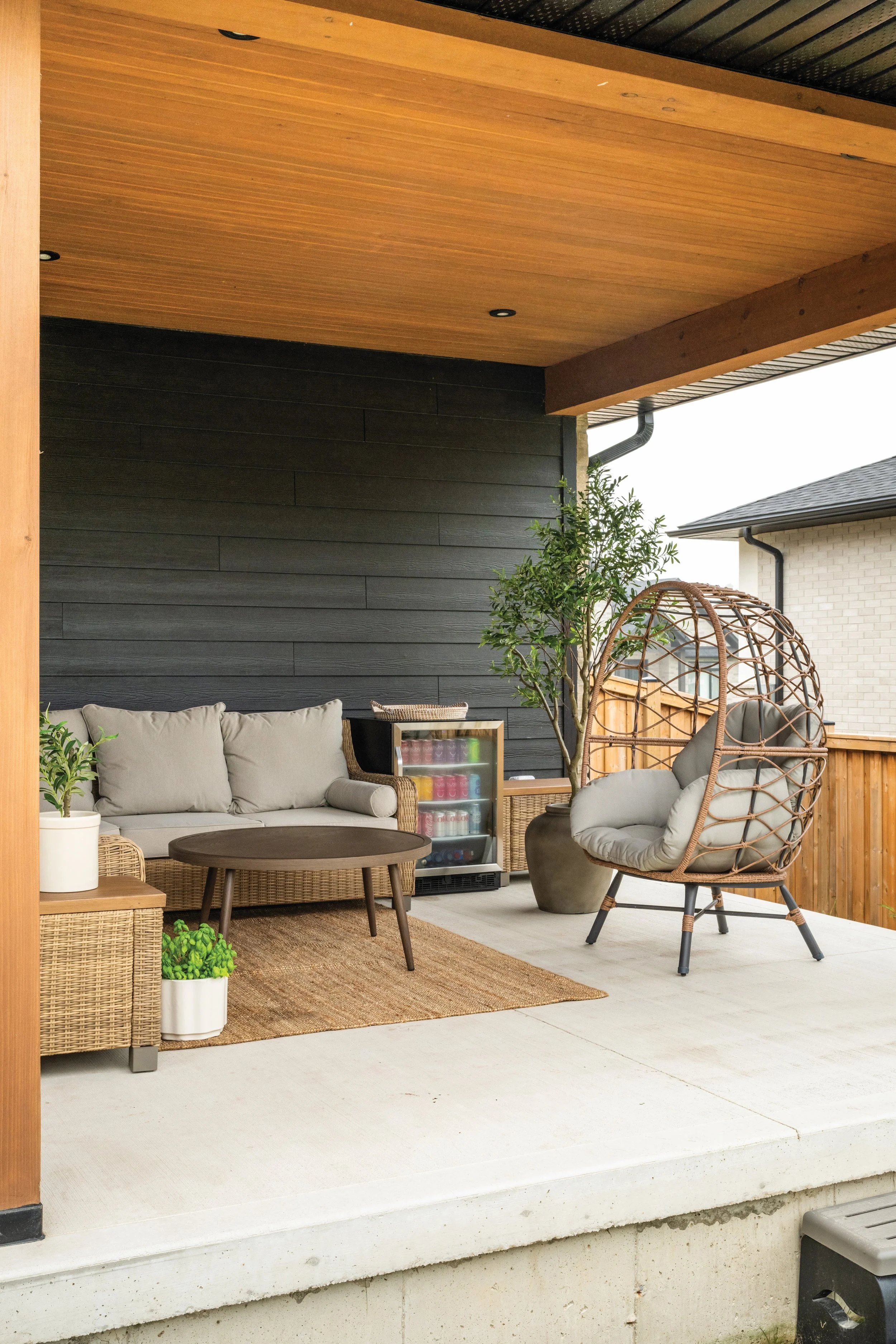 The lot itself was a major draw. “It has a really nice backyard,” says Angela. “It backs onto a lot of trees and green space. We really liked that aspect of it. And we are really close to Lake Huron – you can often hear it.”