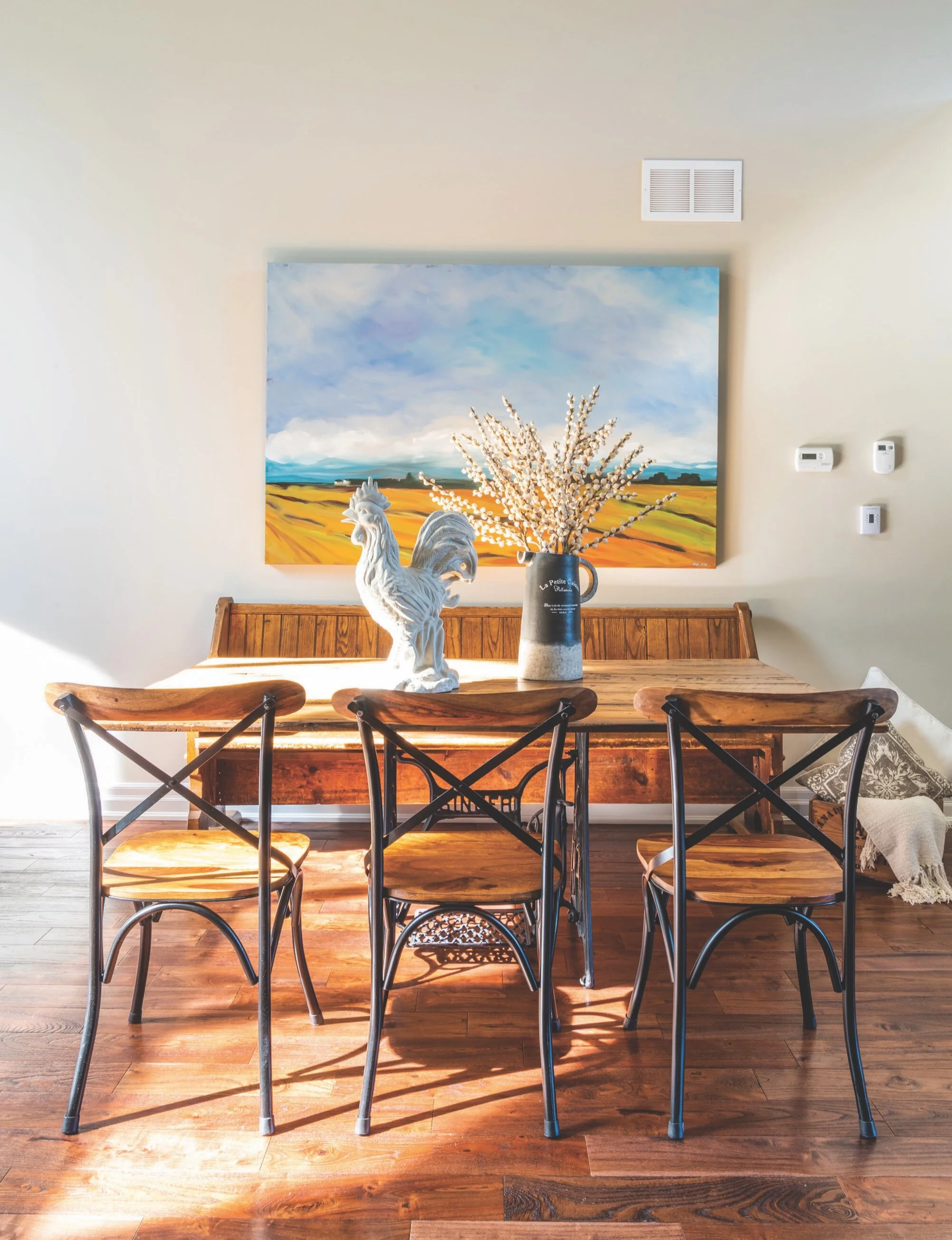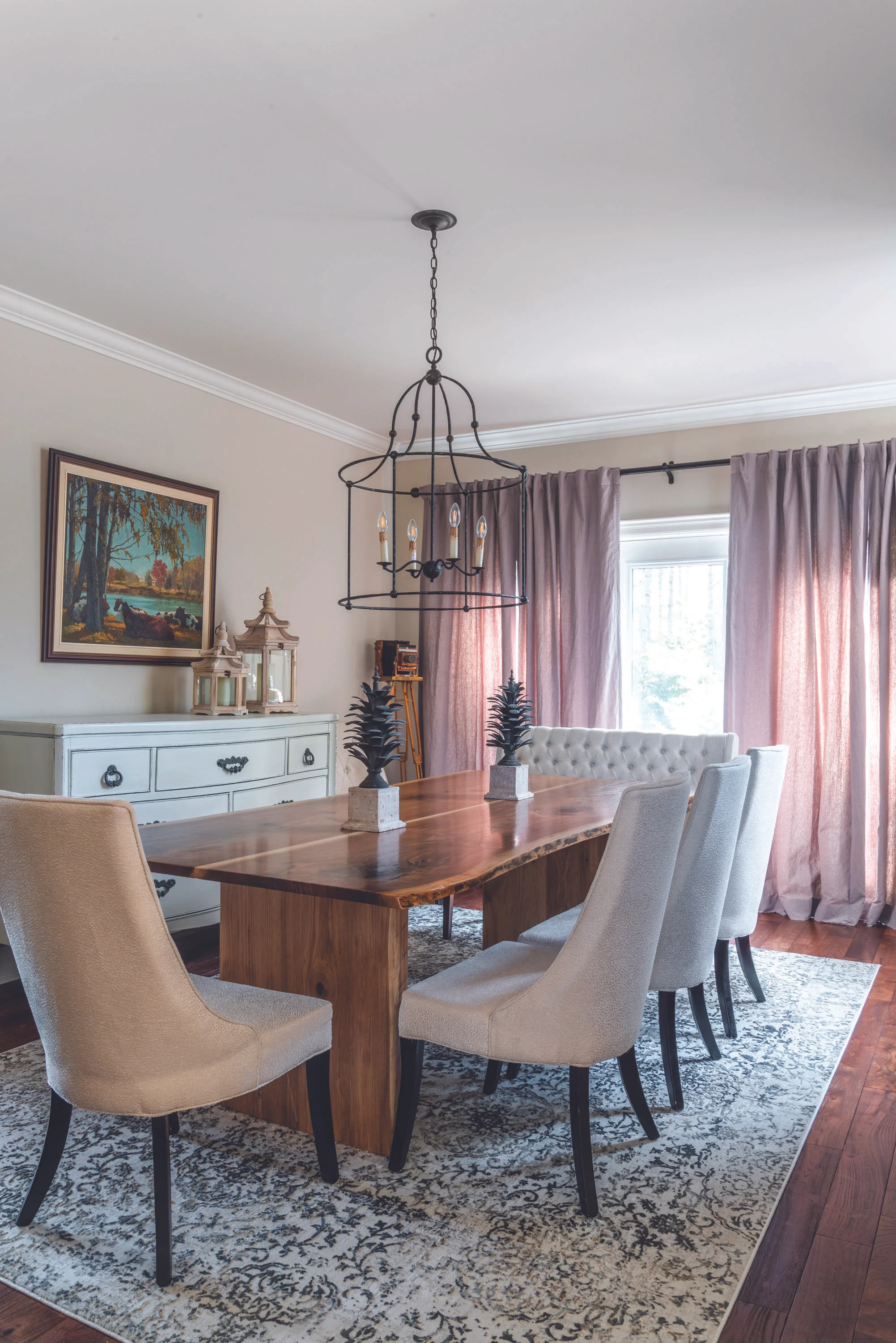 Nick and Wendy turned to interior decorator Sue Kay of Sue Kay & Company for assistance in choosing design details and colours. Bob’s Painting and Decorating completed the painting. Sue provided samples, suggestions, options and even a large painting for the dining room wall that she created by matching the palette of a family heirloom picture, hung nearby.