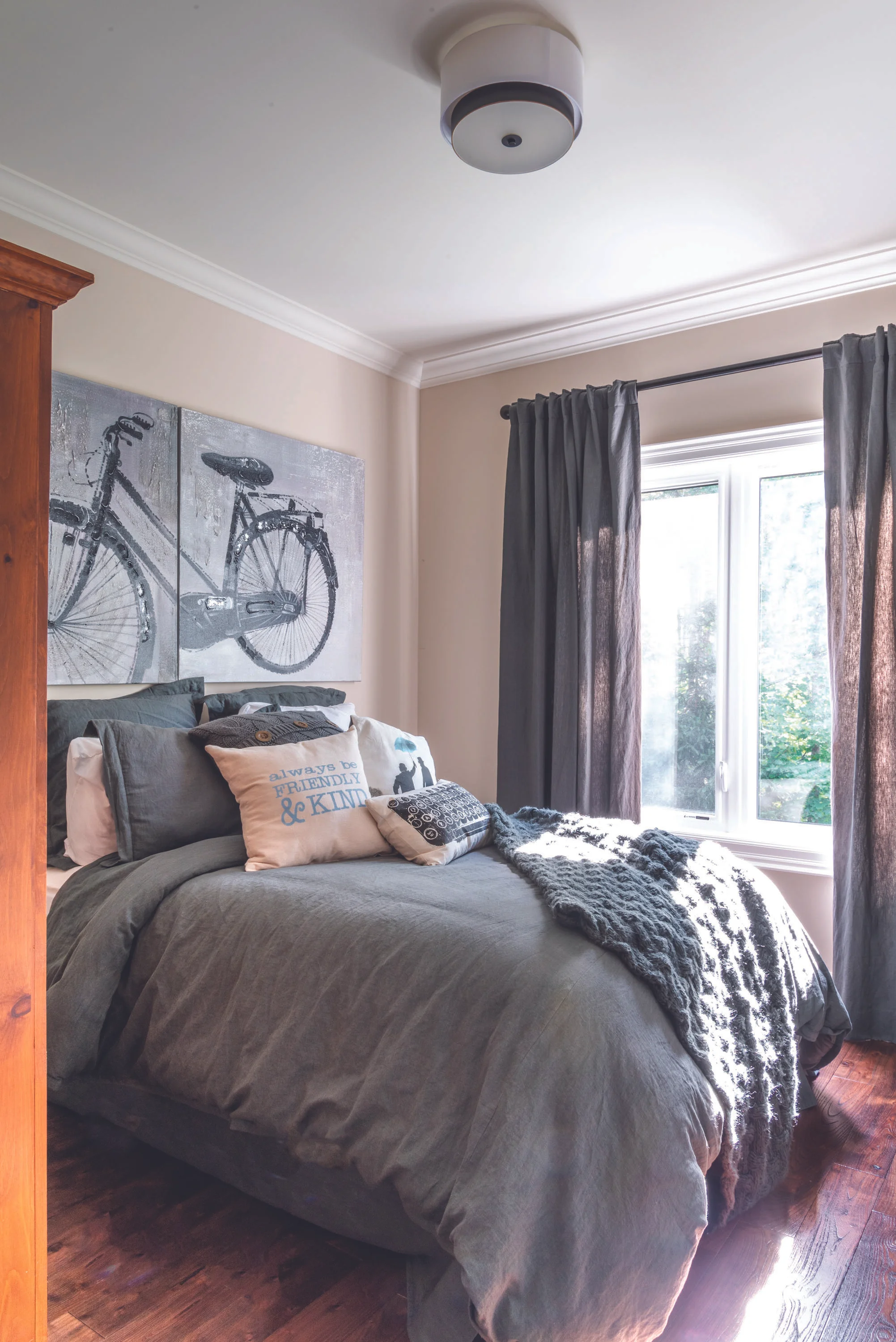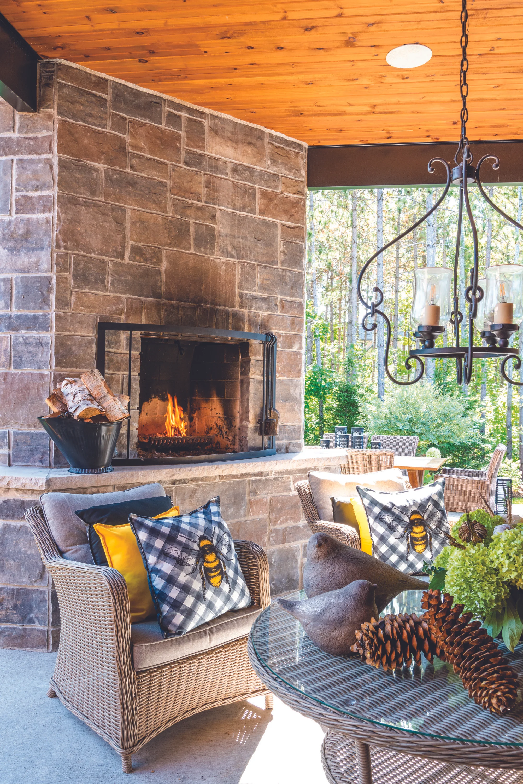 The porch also acts as a gateway to the backyard patio and treed expanse beyond, where they like to entertain friends and family – or watch the blue jays flit from tree to tree.