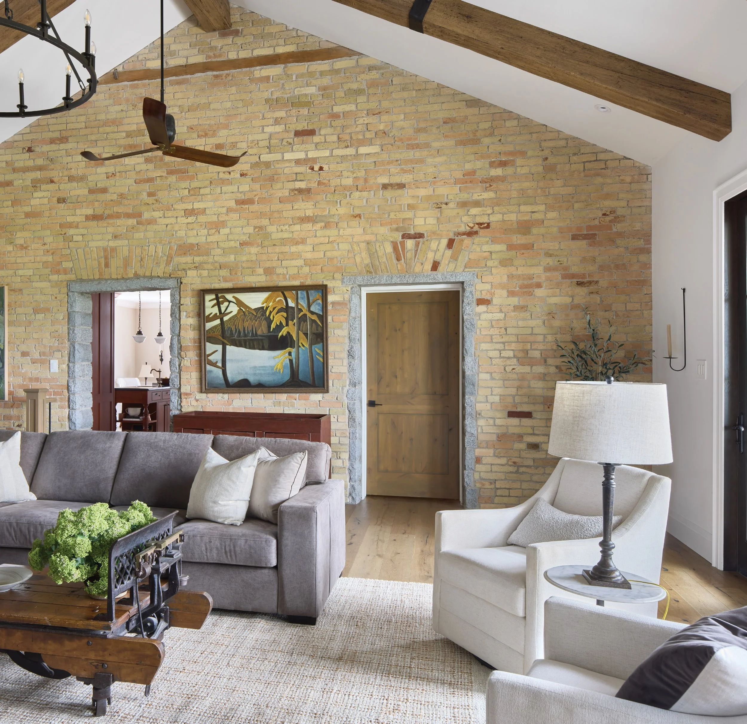 In 2021, the Shackletons worked with Megan Schaff of POW Architecture Inc. to design a 1,500 sq. ft. addition that would replace the 1970s split-level structure attached to the original farmhouse. Marc Milton, owner of Milton Enterprises Inc. (M.E.I.), was brought on board as the builder and broke ground in 2022. Serendipitously, Teri and Brent’s son, Andrew Shackleton, then a Fanshawe College construction student, became part of the M.E.I. construction team and was involved with the project from start to finish. “From the reclaiming of granite from the original addition to the final finishing of the basement,” recalls his proud mother. “It was a very special experience,” says Andrew, “and getting to build my parents’ dream home was a meaningful opportunity. It felt like coming full circle, like giving back to the place and people that shaped me.”